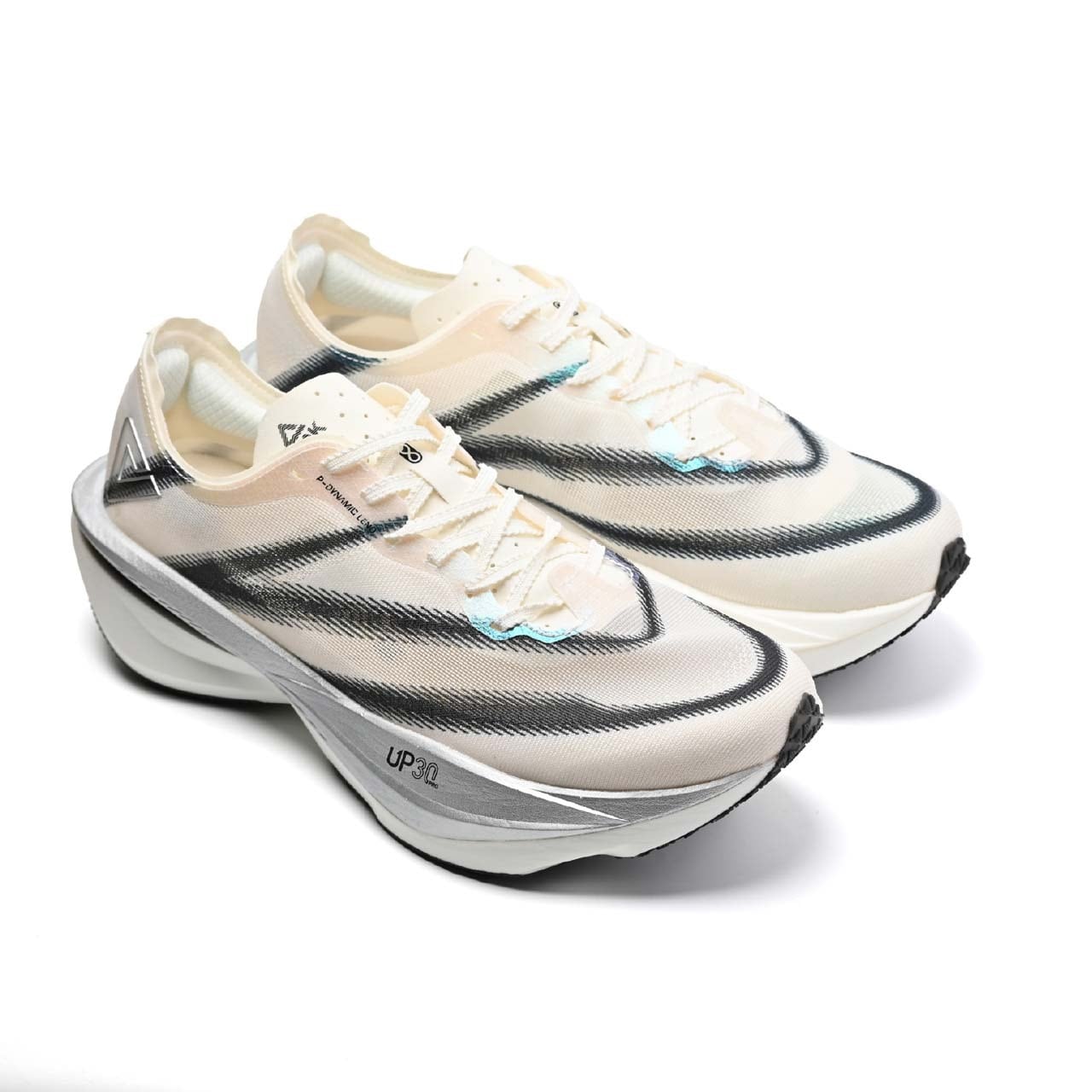 PEAKの技術を集結させたフラッグシップランニングシューズ。バネの様な弾力性と耐摩耗性・耐屈曲性に優れたTPEE素材と、軽量性と衝撃に合わせ反発力を変化させるTAICHI素材で、『ほわっ』っとした走行で足をサポートします。