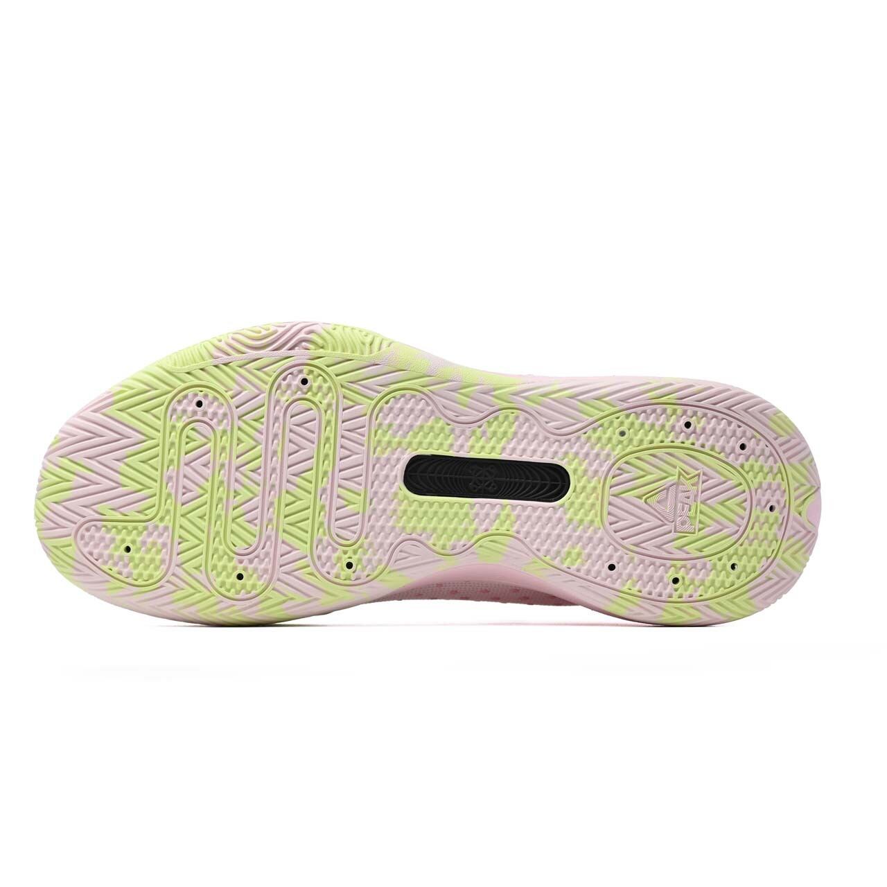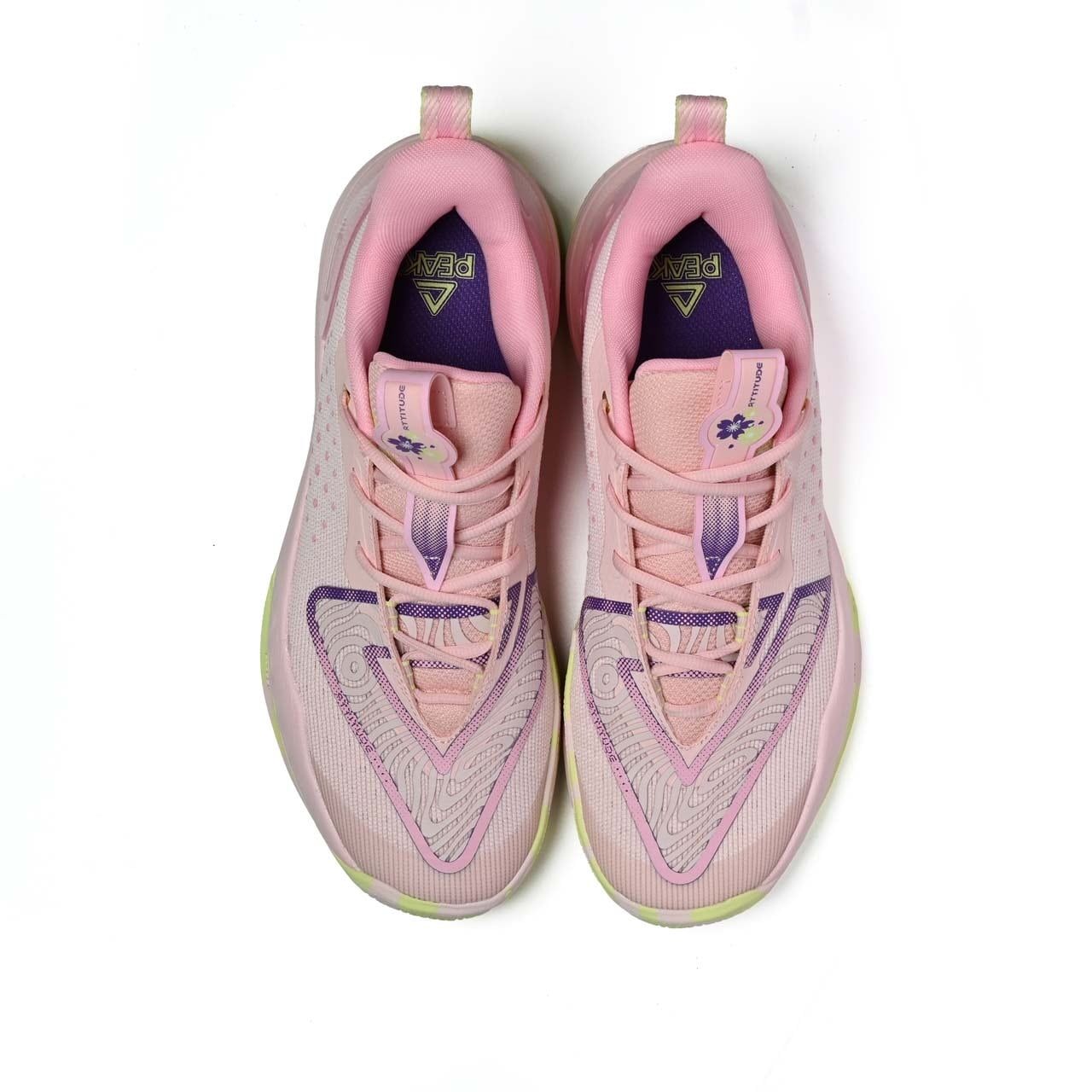 PEAKのハイテクバスケットボールシューズ。大きなPEAKロゴが特徴な、BIGトライアングルデザインのバスケットボールシューズ。衝撃の質により素材の性質を変化させるフレキシブル素材『TAICHI』をカカト部分に、足先には衝撃吸収素材『P-SOON』に搭載し、ミッドソール全体には軽量素材『Ultra Light』とカーボンナイロン製の特殊形状TPUを使用したPEAKの最先端技術を集結させた最高峰ソールを使ったバスケットボールシューズです。ソールの大きなTPUが足をがっちり固定させることで安定したプレーをサポートします。合成繊維で複雑に編み込まれた高強度ナイロンレースが各所に最適な強度で足を快適に包み込みます。