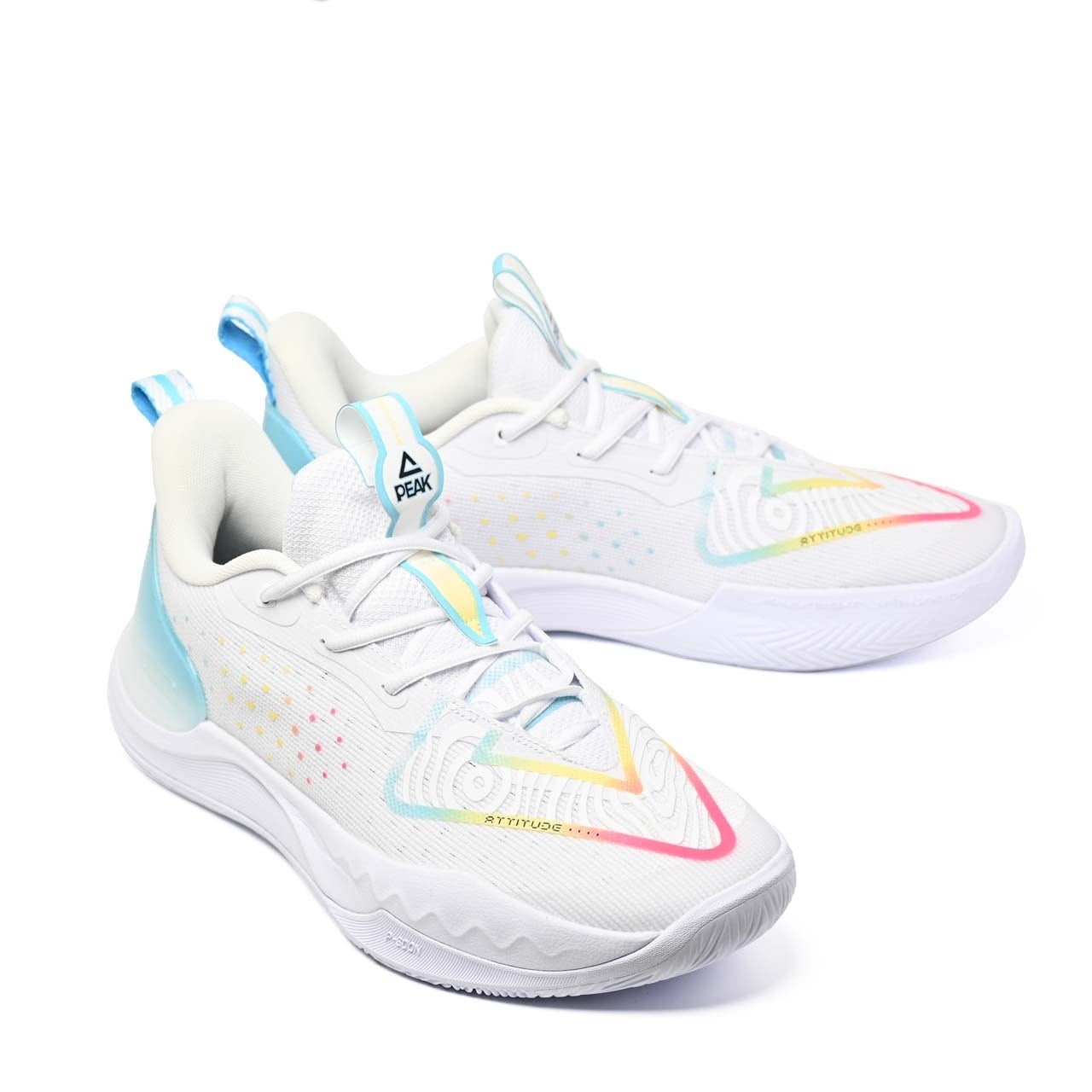 PEAKのハイテクバスケットボールシューズ。大きなPEAKロゴが特徴な、BIGトライアングルデザインのバスケットボールシューズ。衝撃の質により素材の性質を変化させるフレキシブル素材『TAICHI』をカカト部分に、足先には衝撃吸収素材『P-SOON』に搭載し、ミッドソール全体には軽量素材『Ultra Light』とカーボンナイロン製の特殊形状TPUを使用したPEAKの最先端技術を集結させた最高峰ソールを使ったバスケットボールシューズです。ソールの大きなTPUが足をがっちり固定させることで安定したプレーをサポートします。合成繊維で複雑に編み込まれた高強度ナイロンレースが各所に最適な強度で足を快適に包み込みます。