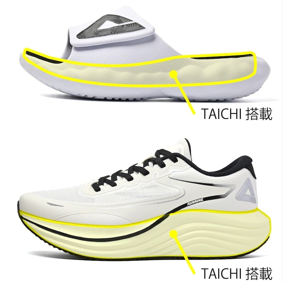PEAKが独自開発したTAICHIは、分子構造が運動の強度に応じて変化し、常に最適な履き心地を提供する革新的ミッドソールテクノロジーです。歩行時にはふわふわと足を包み込み、走行時には分子が結合して高反発力を発揮。長時間の使用でも快適さを保ち、スポーツから日常まで幅広く対応。足に寄り添う万能クッション素材です。