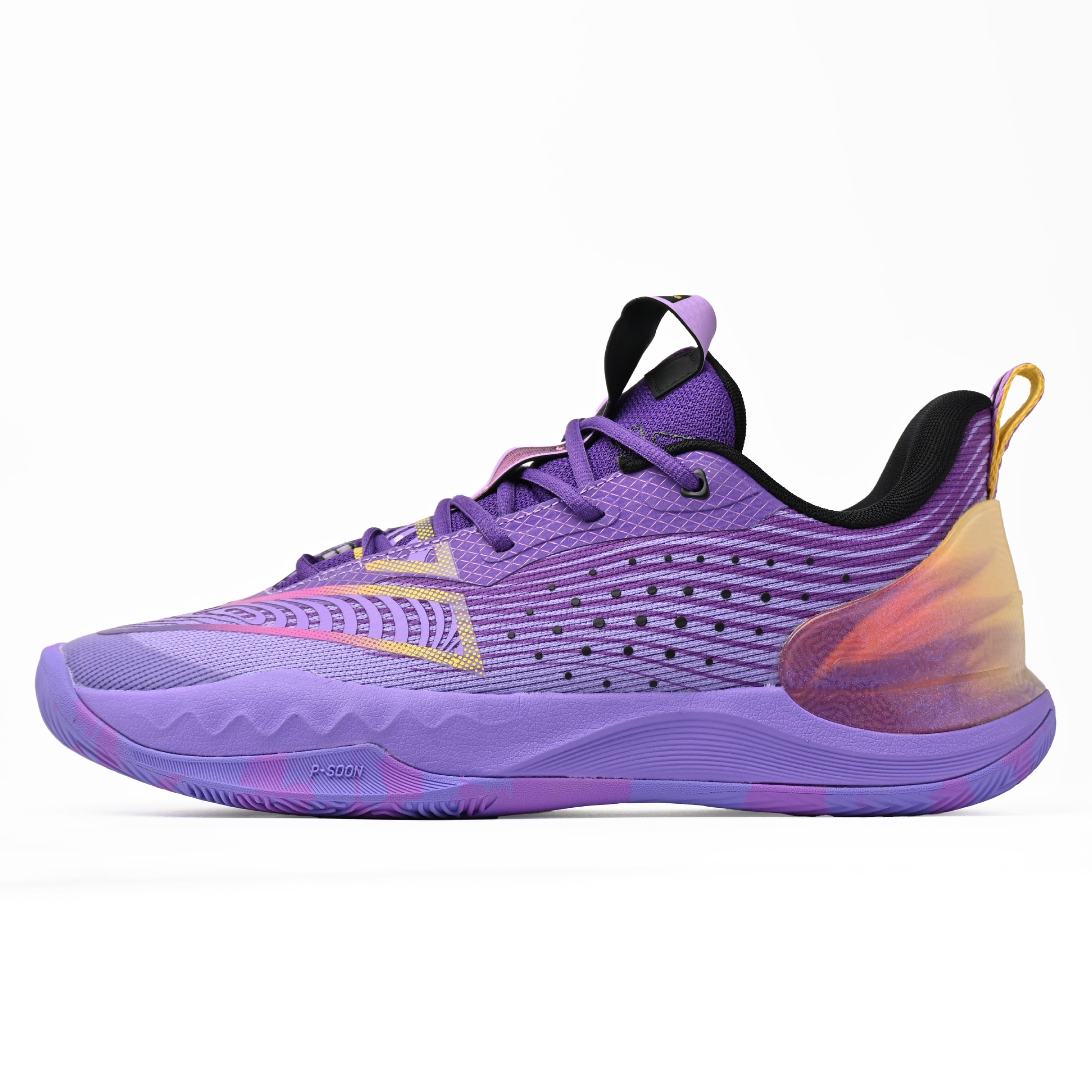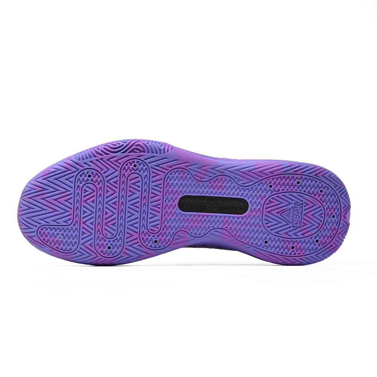 PEAKのハイテクバスケットボールシューズ。大きなPEAKロゴが特徴な、BIGトライアングルデザインのバスケットボールシューズ。衝撃の質により素材の性質を変化させるフレキシブル素材『TAICHI』をカカト部分に、足先には衝撃吸収素材『P-SOON』に搭載し、ミッドソール全体には軽量素材『Ultra Light』とカーボンナイロン製の特殊形状TPUを使用したPEAKの最先端技術を集結させた最高峰ソールを使ったバスケットボールシューズです。ソールの大きなTPUが足をがっちり固定させることで安定したプレーをサポートします。合成繊維で複雑に編み込まれた高強度ナイロンレースが各所に最適な強度で足を快適に包み込みます。
