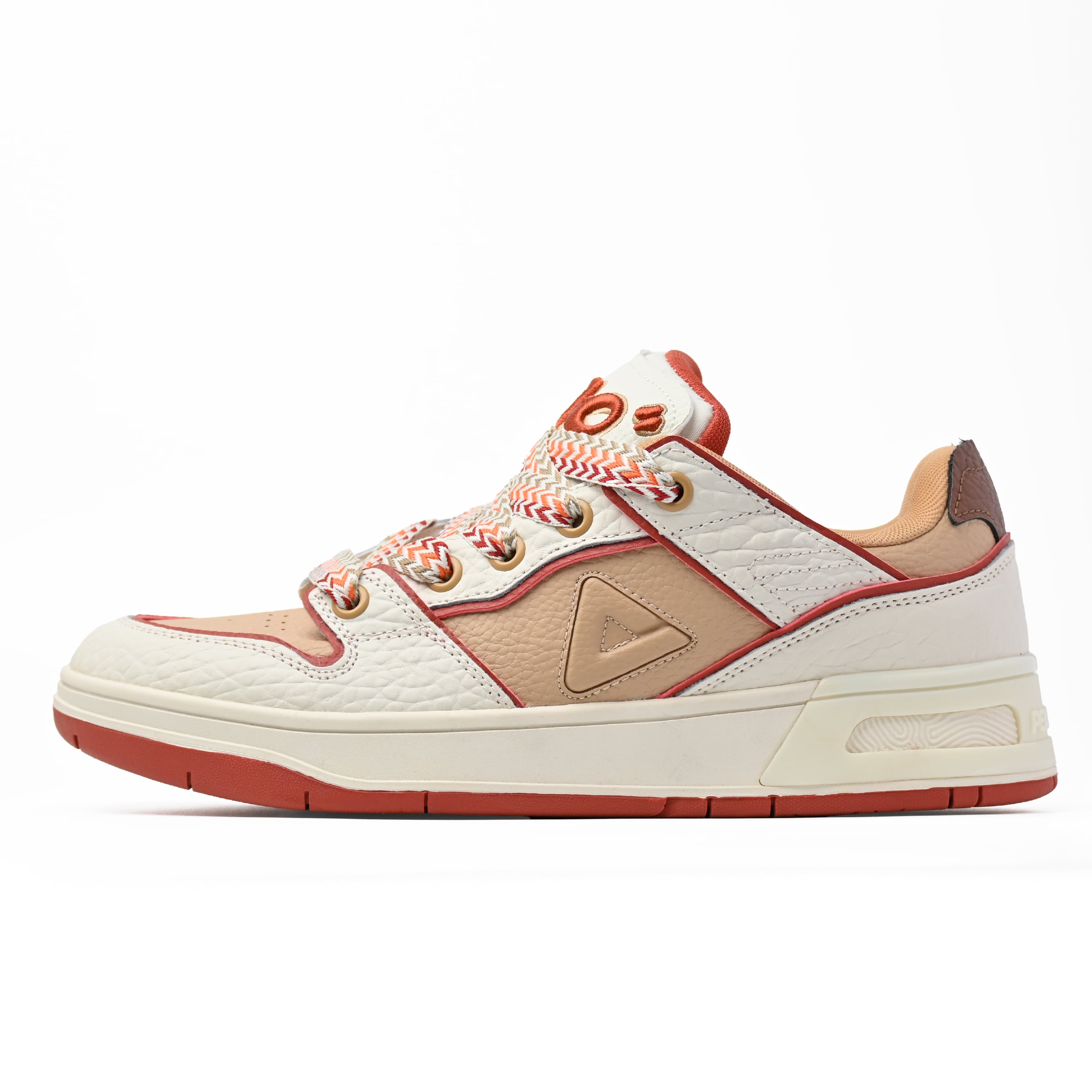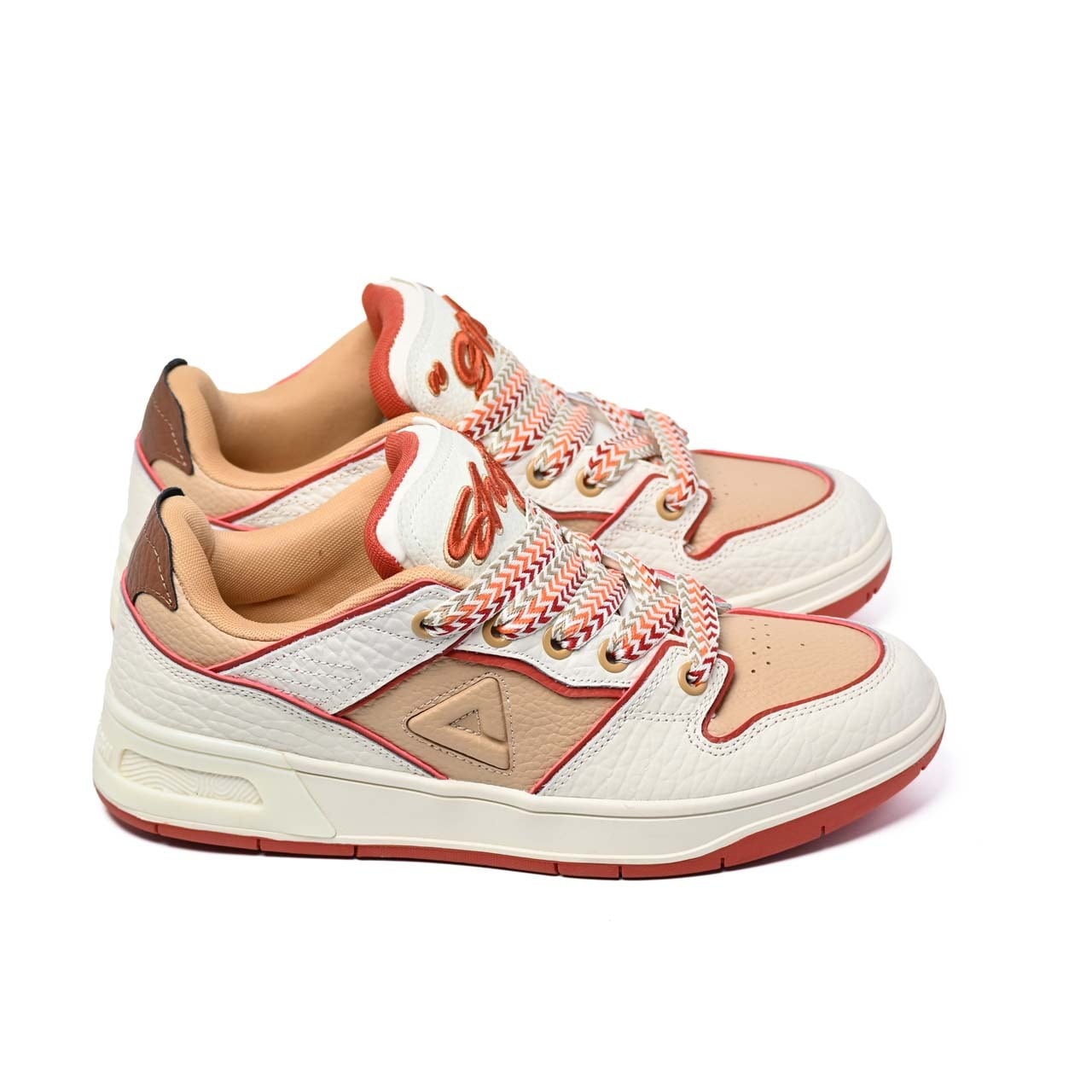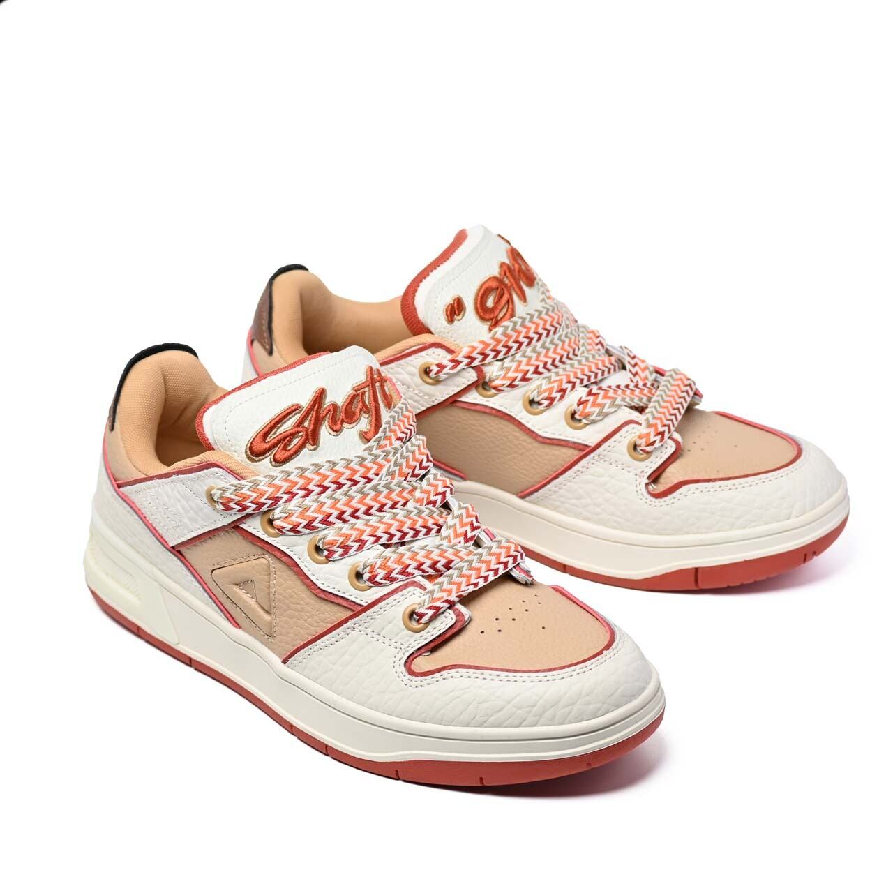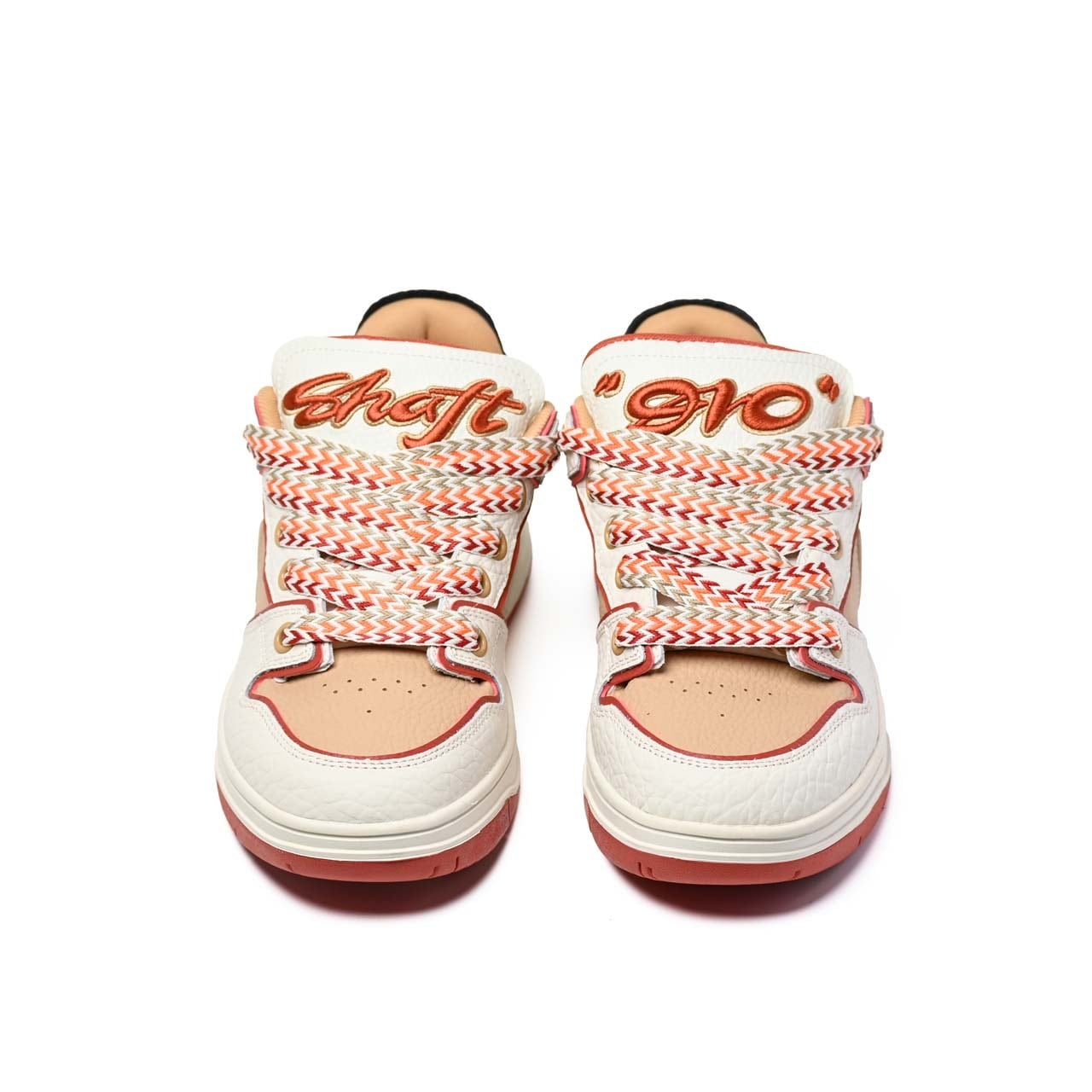 シュータンには立体刺繍『910』ロゴを配し、カラフルな極厚三つ編シューレースが、シンプルでありながらも個性を発揮します。