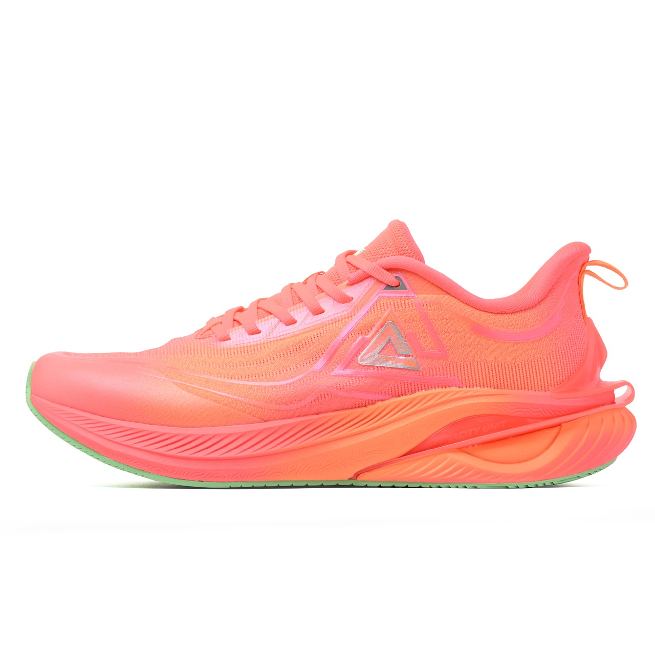 PEAKのハイテクランニングシューズ。高通気性ニットアッパーが足全体を包み快適な走行をサポートします。衝撃に対して柔軟に変化するTAICHIのミッドソールが衝撃を促進力へと変換させる新しい走行体験を与えます。かかとのTPUパーツが足をしっかりと固定し安定した走行をサポートする最新ランニングシューズ。